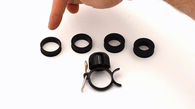 Slide the Runbell on your pointer finger with the spring facing your thumb.